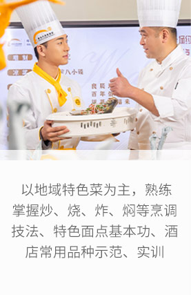 以培养中高级烹饪技术人才为目标,掌握以川湘风味菜、地域特色菜为主的烹调技法及工艺流程,能够胜任大厨、厨师长等重要岗位。